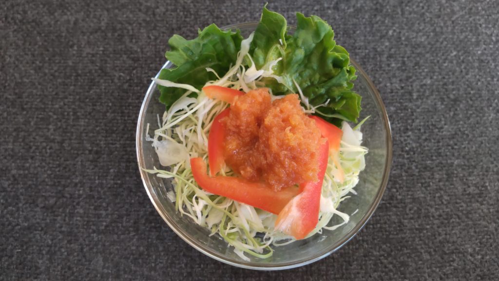 サラダはにんじんドレッシングが掛かったサラダ。