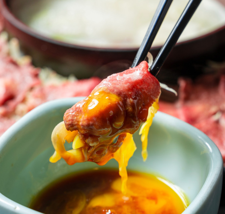 黄身とポン酢を混ぜたタレに付けて食べます。