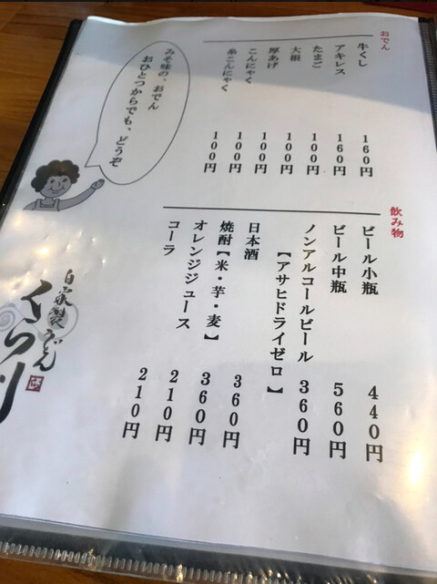 くら川 メニュー表
