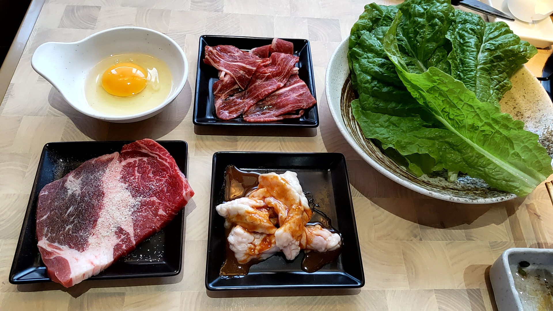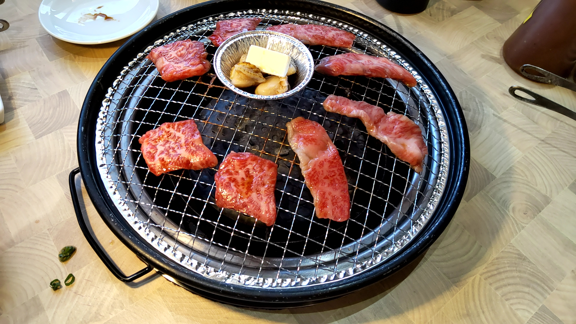 普通の味でした → ホルモン、ざぶとん、上カルビ、骨山、カルビロール、牛タン(ねじ塩)