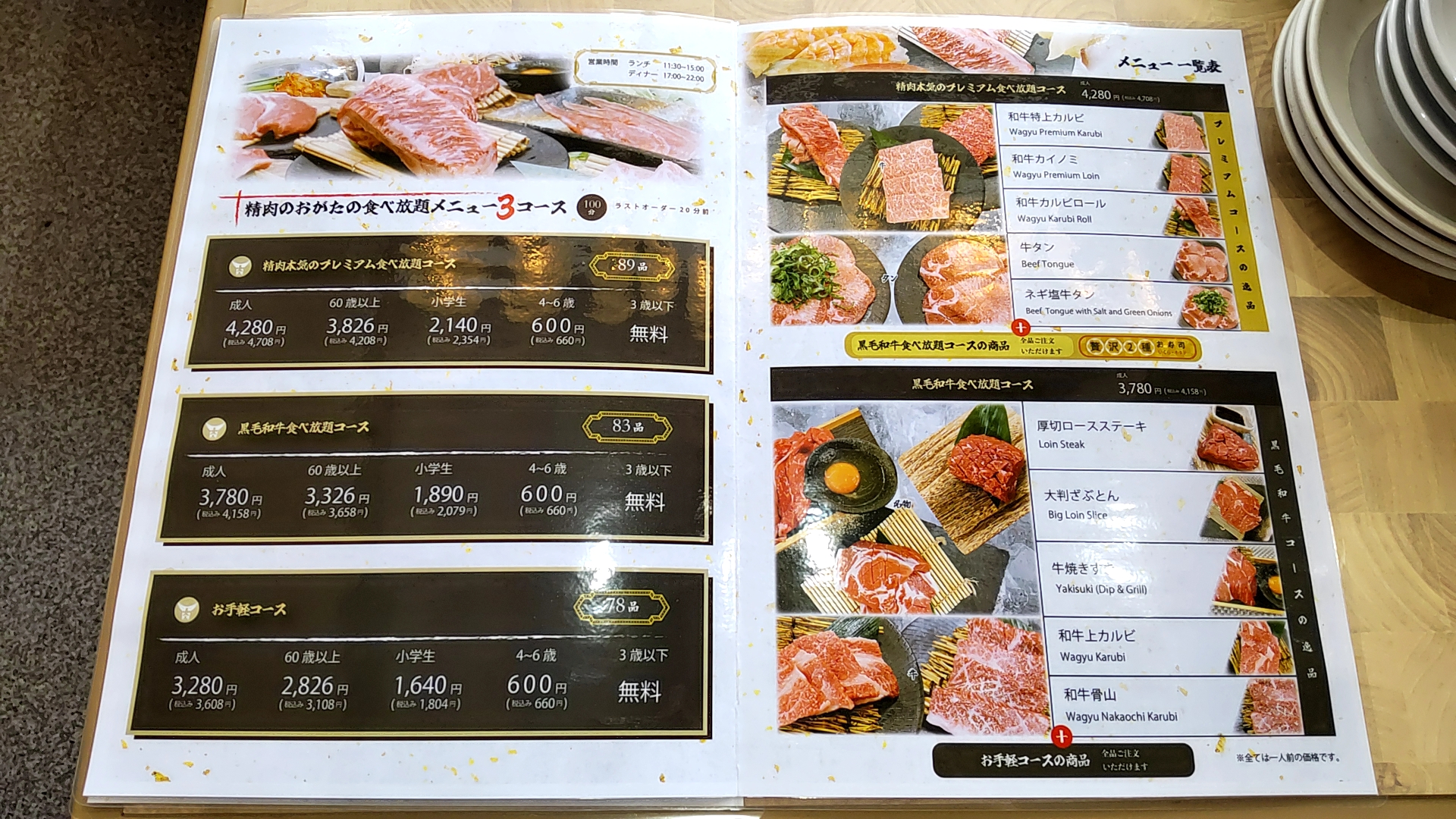 やっぱり少し良い牛肉を食べたい方は黒毛和牛食べ放題コース(4158円)です。