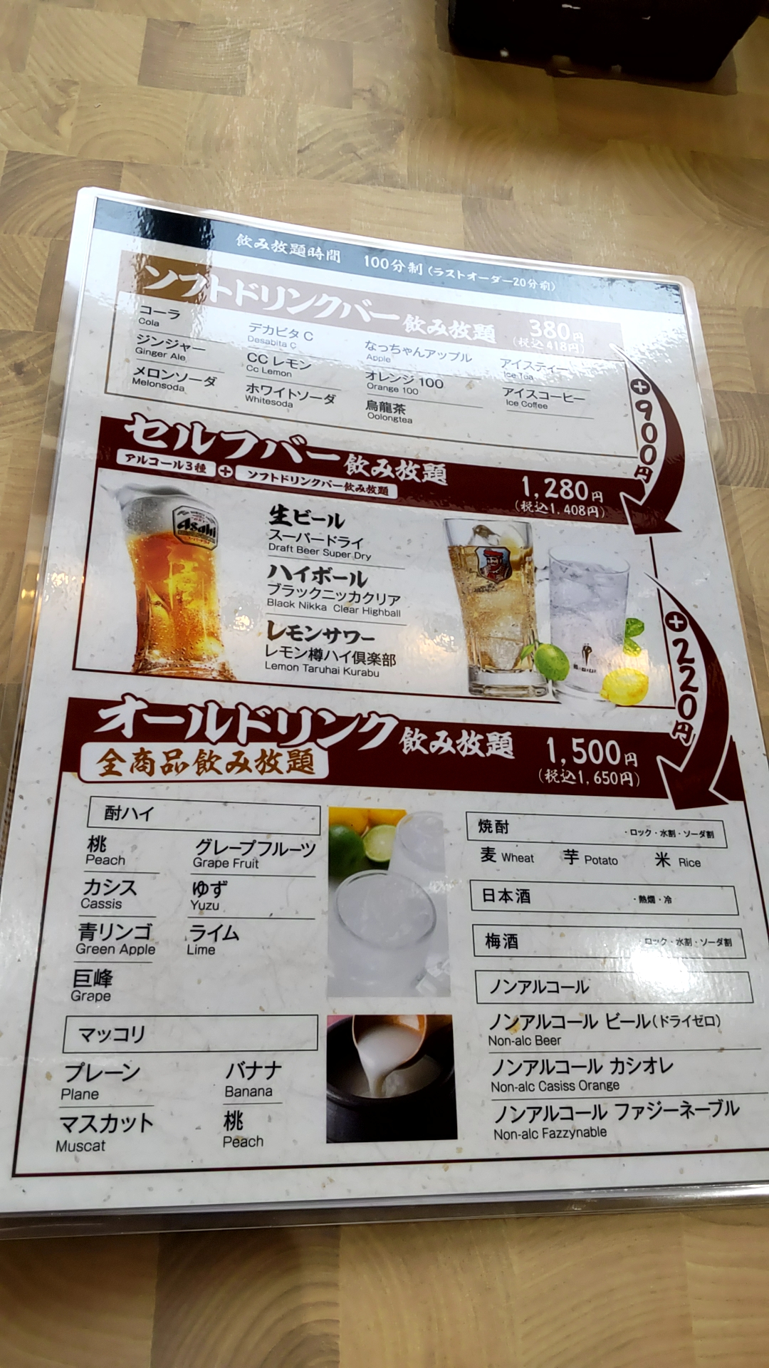 夜の食べ放題コースについて(時間100分 ラストオーダー20分前)