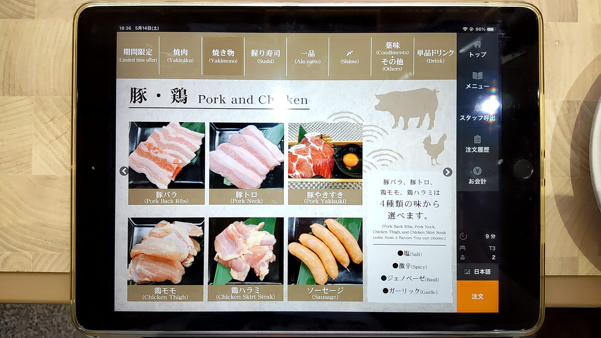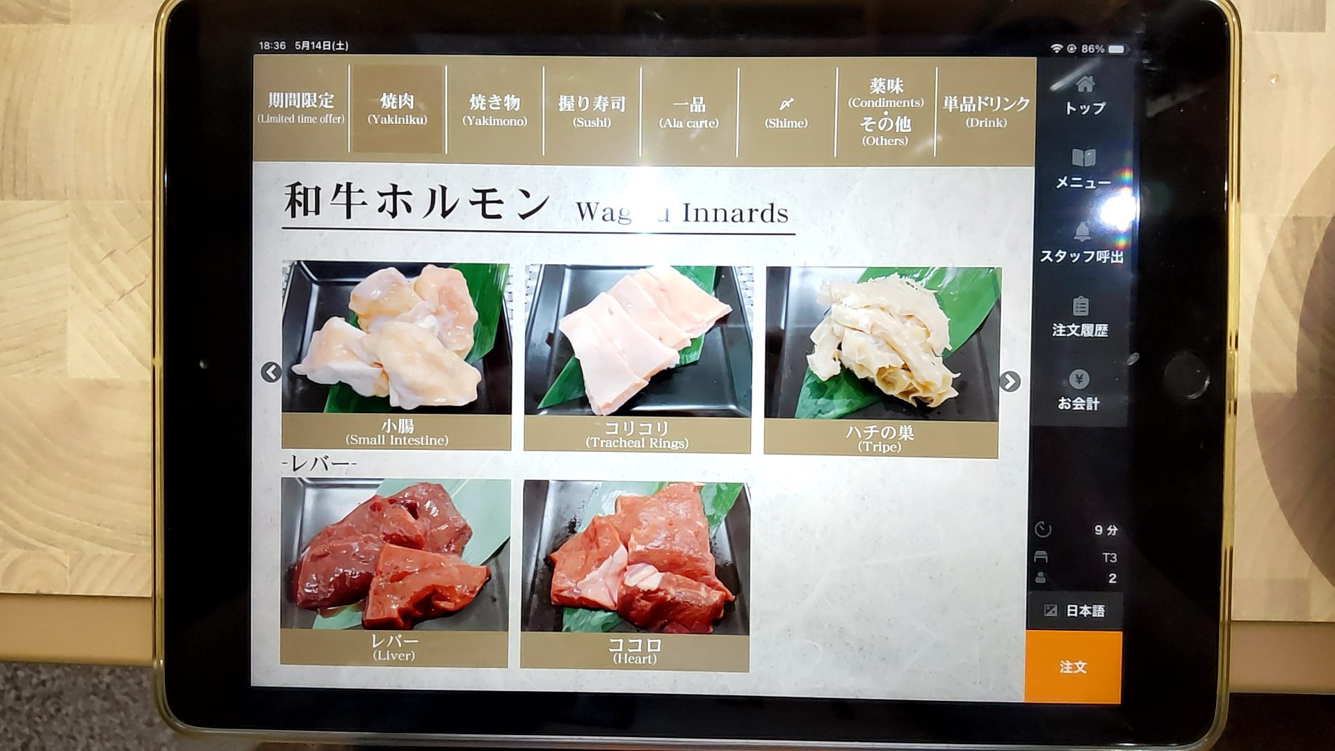 最後に気づいたのですが、こちらのお店には 黒毛和牛のハラミ がなかったのがショックでした。